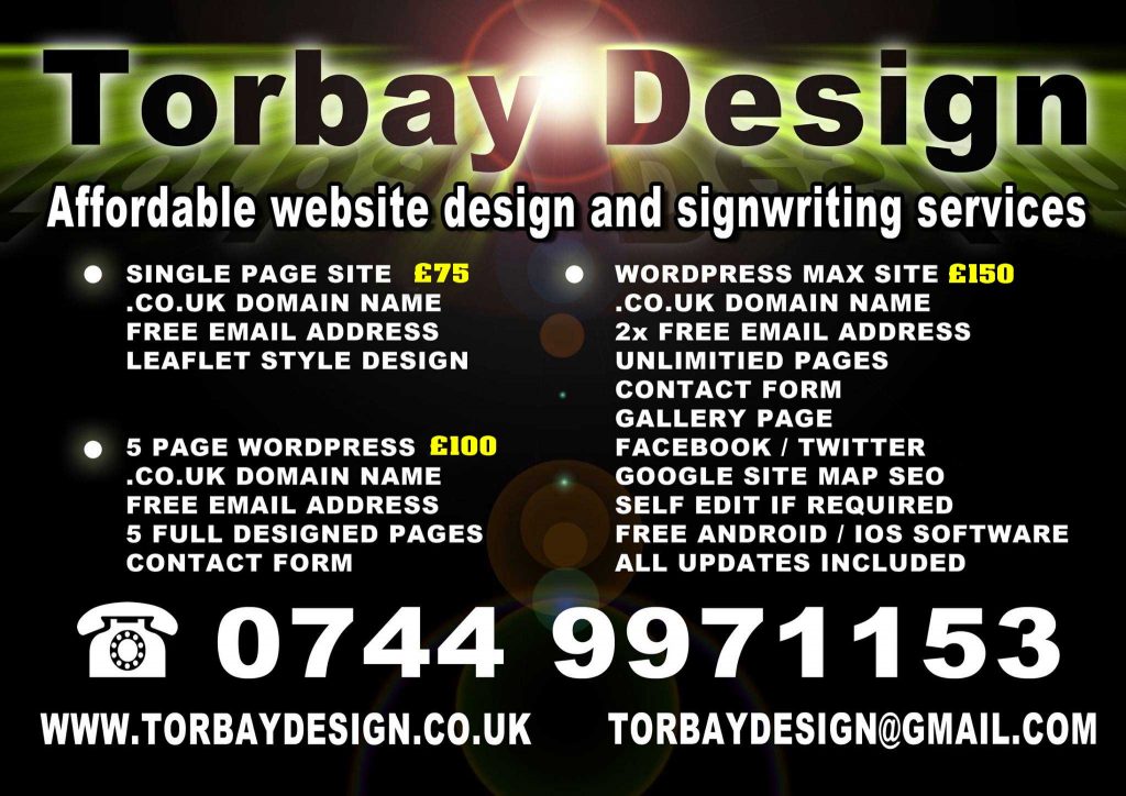 Torbay Design offers a range of affordable web design packages to suit your needs and budget. Our single page site package starts at £75, our 5-page site package at £100, and our full blog site package at just £150. All these packages include a .co.uk domain name and 12 months of hosting. Renewal after the first year is just £75 on all sites.